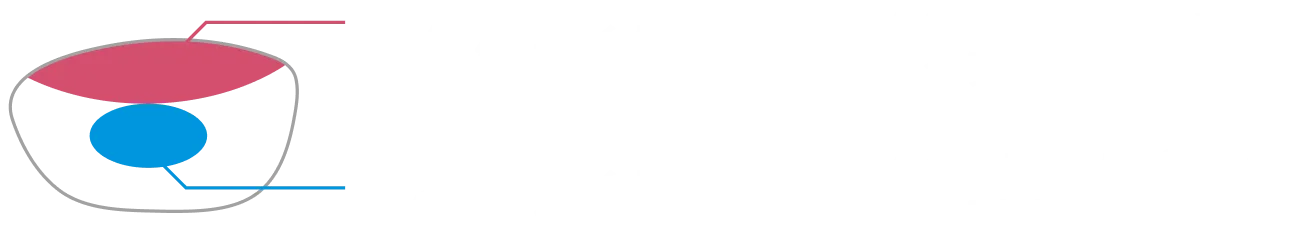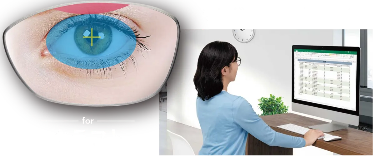 ¶:ニコン・レンズウェアの従来世代の Relaxsee との比較。レンズ中心から下方10~16mmに位置するレンズ領域の物理的サイズについての社内比較に基づく。